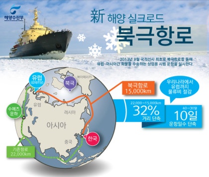 기존의 수에즈 운하-말라카 해협-대한해협을 잇는 남방 항로에 비해,