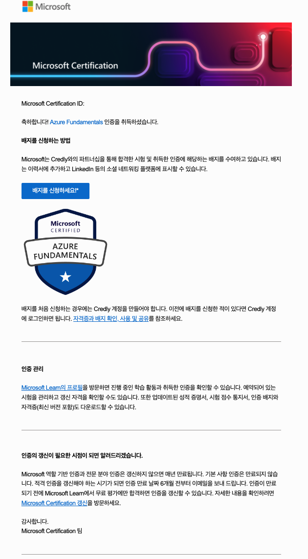 배지 신청을 하여 credly.com을 통해 링크드인에도 추가할 수 있고, 아래와 같이 Public Link를 만들 수 있습니다.